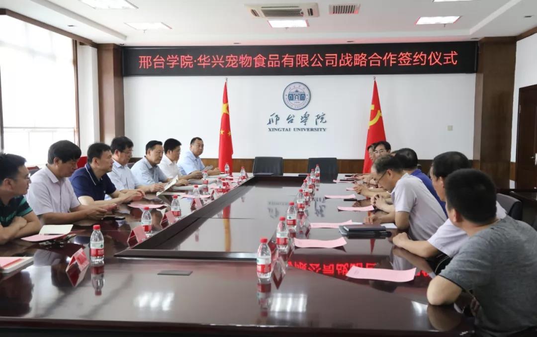 7月3日,南和縣委常委、組織部長李中伏,南和縣委常委、統(tǒng)戰(zhàn)部長樊振宇以及南和縣人大、政協(xié)、農(nóng)業(yè)農(nóng)村局等相關(guān)領(lǐng)導與華興寵物食品有限公司總經(jīng)理冀葉軍一行一起前往邢臺學院參加邢臺學院·華興寵物食品有限公司戰(zhàn)略合作簽約儀式。邢臺學院校長蔡振禹與校方其他主要領(lǐng)導成員參與了合作簽約儀式。